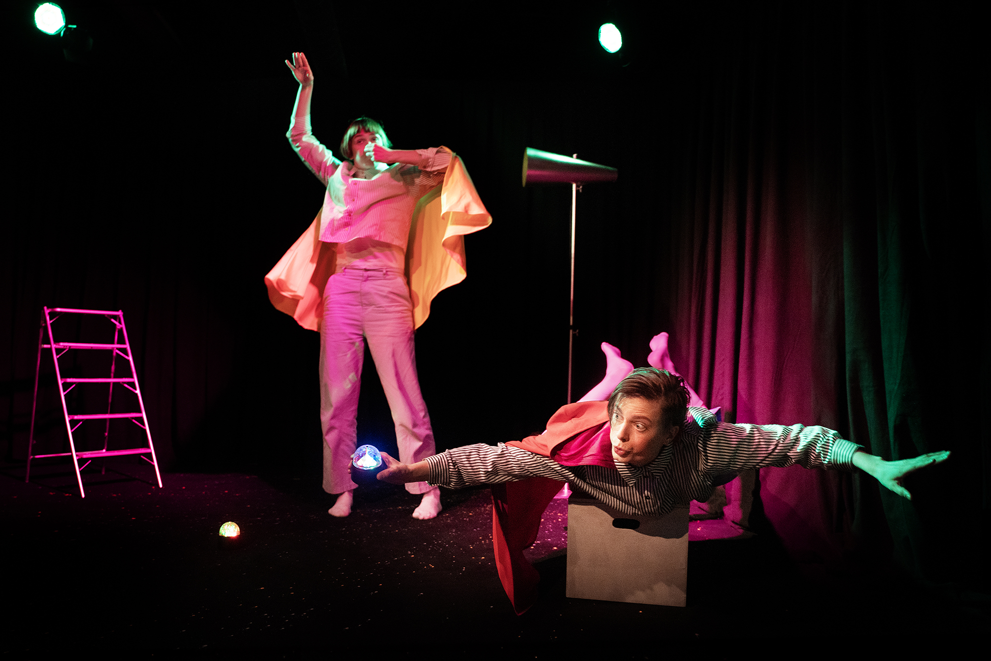 Näyttämöllä: Andrea Björkholm & Mia Helenelund Lavastus/puvut: Linn Henriksson Strååt Musiikki/äänet: Linnea Jansson Koreografia: Jenny Salomonsen Foto: José Figueroa